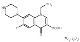 異名:1-乙基-6-氟-4-氯代-1,4-二氫-7-(1-哌嗪基)-3-喹啉羧酸乳酸鹽