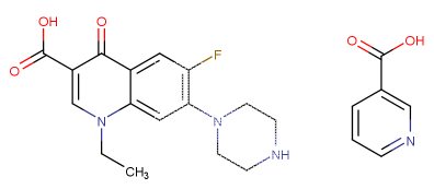 化學(xué)名:1-乙基-6-氟-4氧代-1,4-二氫-7-(1-哌嗪基)-3-喹啉羧酸煙酸鹽